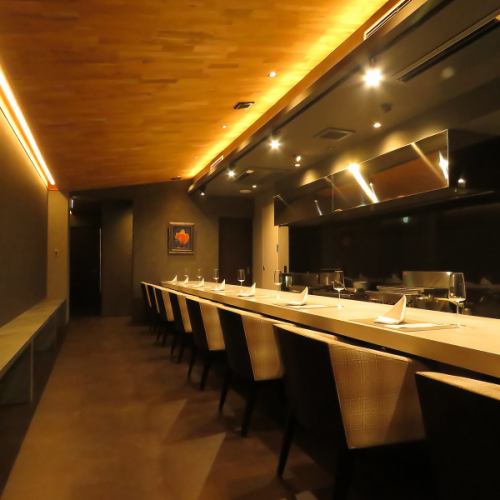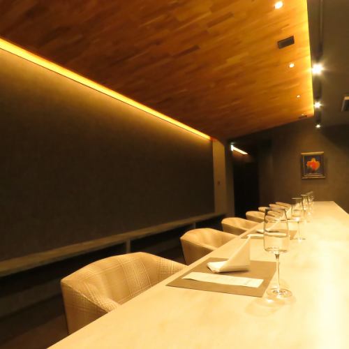 【洗練されたシックな空間】当店には、キッチンが見渡せるカウンター席が8席と、6名様がけのテーブルを配した個室を完備しております。デートでのご利用からお誕生日や記念日まで、大切な方との特別なディナーに最適な雰囲気をお届けしております!心に残るひとときを、ぜひ当店でお過ごしください。